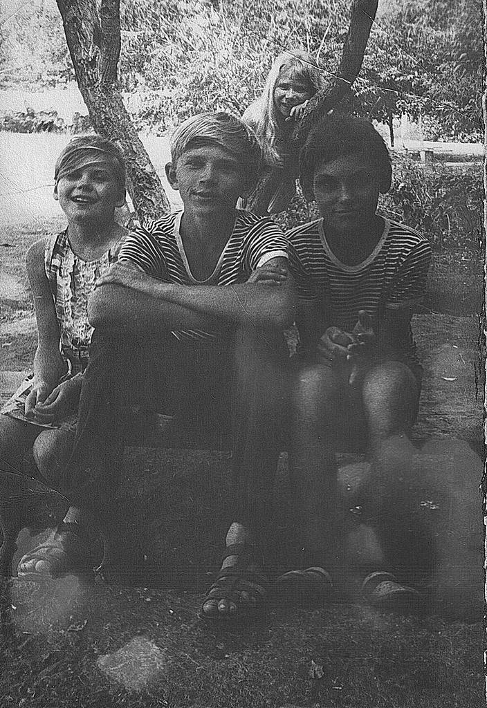 Кобзева Таня, Кобзев Володя, я. Тот же 83-ий дом. Наверно, 72-й год.