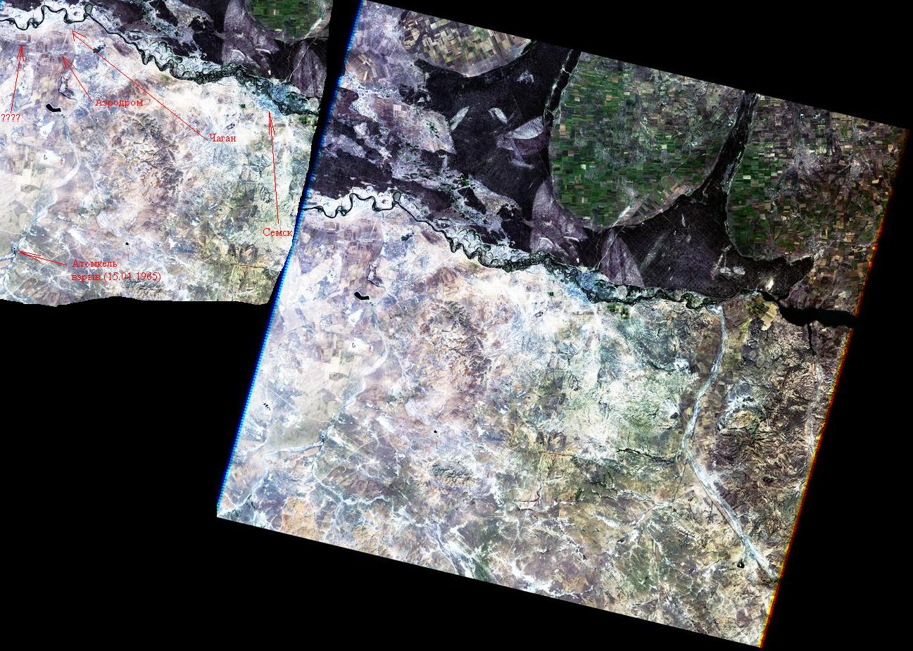 Снимок прибора PAN (КА IRS-1C) р Иртыш (р-он пгт Чаган)
