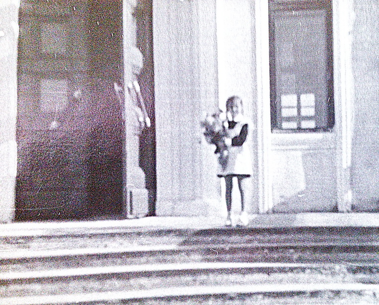 Я возле двери нашей любимой школы, перед первым звонком, 1 класс