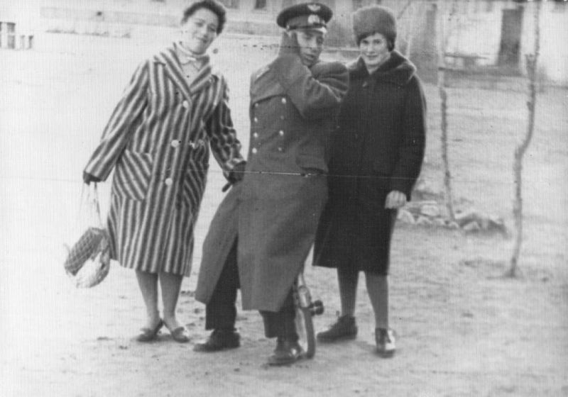 Захаров Борис Захарович оседлал велосипед.Мама, Светлана Сергеевна, слева.